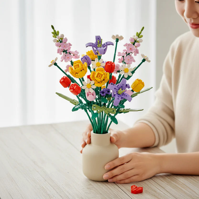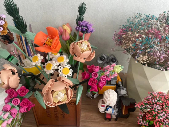 LEGO flowers are hand-assembled decorative flower sets made entirely from LEGO bricks. They transform the aesthetics of real flowers into a lasting work of art. Each piece is assembled individually, resulting in a unique, timeless bouquet.